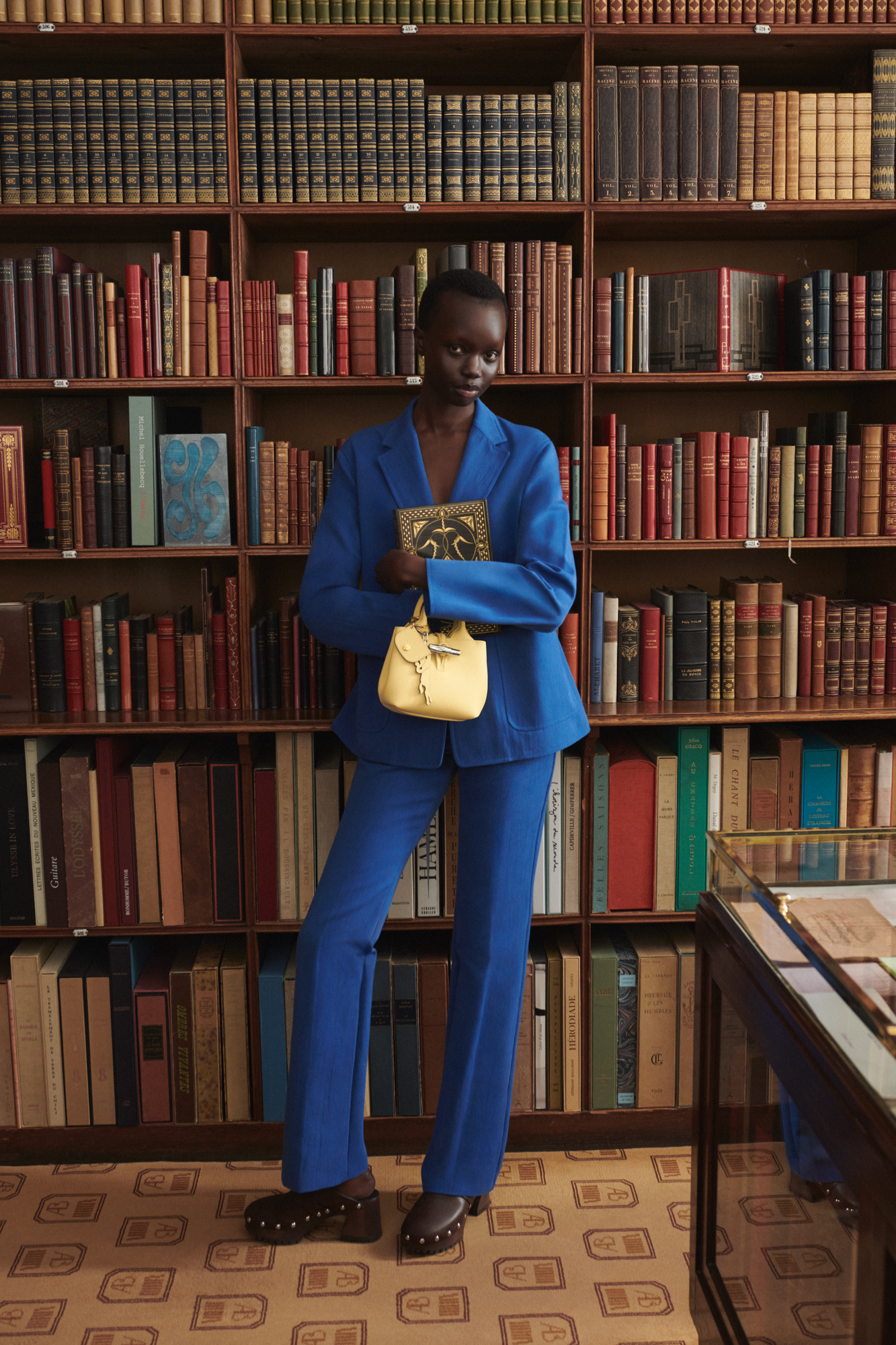 Le Roseau es su imprescindible porque parece anticiparse a lo que necesita. Los colores que tapizan su estudio —verde orégano, amarillo canario— dialogan con los nuevos tonos de la colección. Al salir en bicicleta, cruza su bucket bag al cuerpo; otras veces, elige el formato hobo. Y cuando llega el momento de asistir a una inauguración en galería, opta por la versión más depurada de Le Roseau, un modelo de noche con cierre de bambú en tono plateado que sella su estilo con elegancia. Ese mismo detalle aparece también en blusas plisadas y vestidos, ahora con acentos en madera de maple.